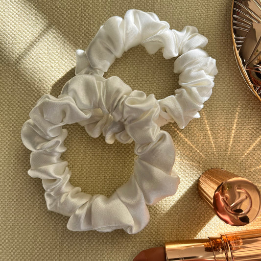 Ivory Satin Scrunchies Set - Handmade Silk Hair Accessories