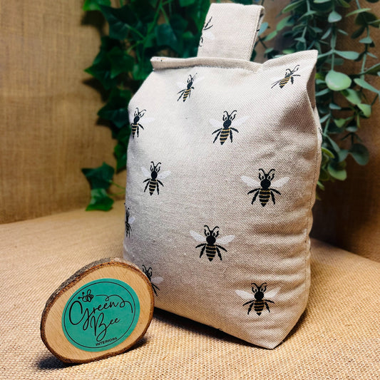 Ivory Bee Print Linen Doorstop: Nature Inspired Home Decor