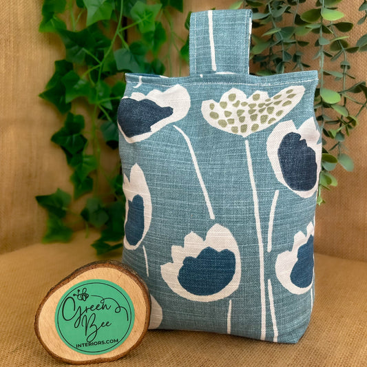 Large Blue Scandi Floral Print Door Stop: Retro Home Decor