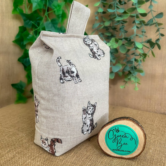 Large Cat Printed Linen Door Stop: Farmhouse Home Decor