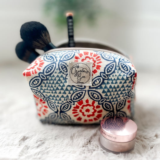 Mandala Print Makeup Bag - Handmade Lined Cosmetic Pouch, Metal Zipper, Small, Medium, Large