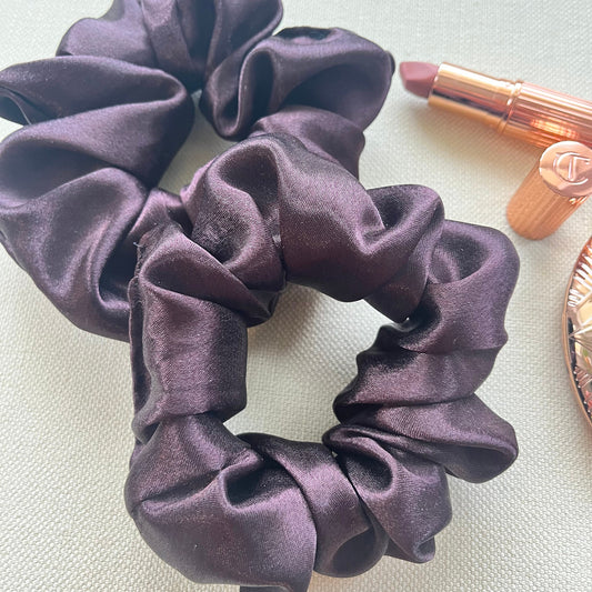 Mocha Satin Scrunchies Set, Wedding Favors or Bridesmaid Gift for her, Handmade Silk Hair Scrunchies Set Oversized