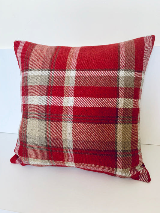 Red Wool Tartan Cushion Covers: Reversible, Farmhouse Decor