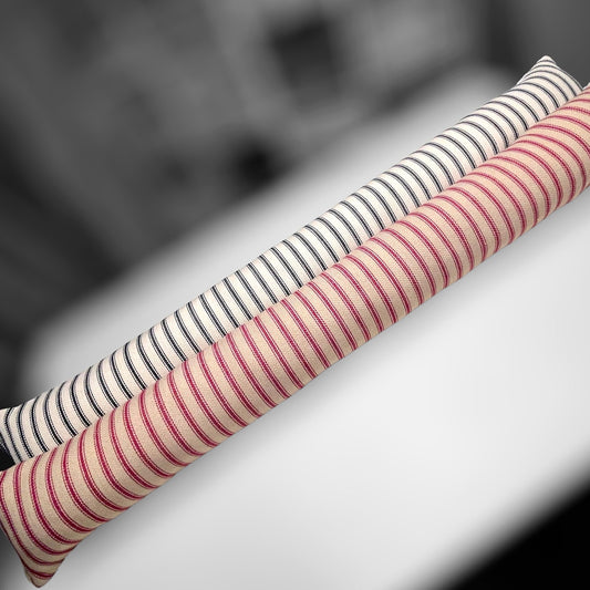 Red French Ticking Stripe Draught Excluder – Weighted, Farmhouse Decor