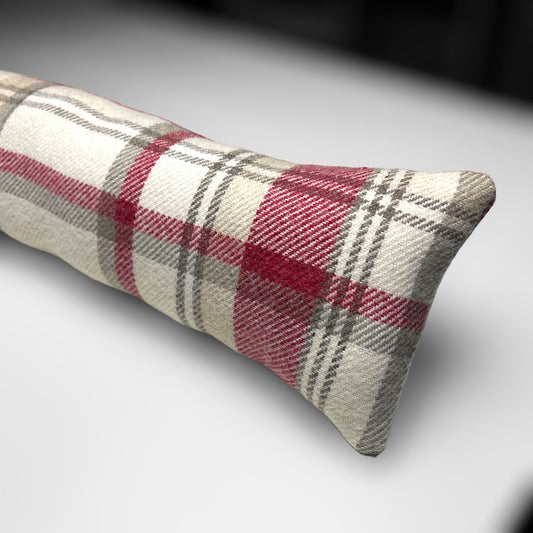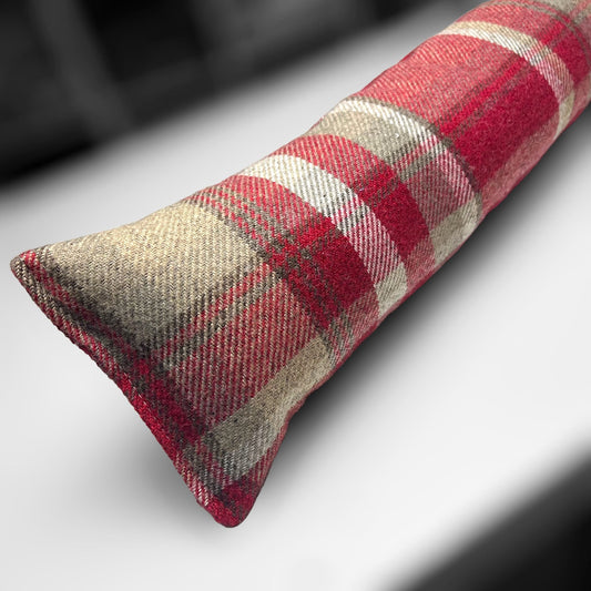 Red & Cream Wool Tartan Draught Excluder – Weighted, Cozy Farmhouse Decor