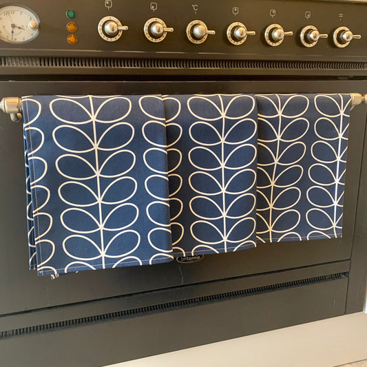 Retro Orla Kiely Linear Stem Tea Towels, Orla Kiely Fabric, Set of 3, Singles, Handsewn, Choice of colours
