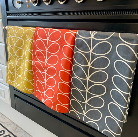 Retro Stem Orla Kiely Tea Towels, Kitchen Towels, Set of 3, Singles, Handsewn, Mid Century Scandi Print Orla Fabric