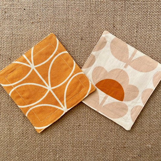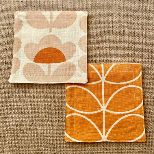 Retro Orange Orla Kiely Fabric Coasters x 2 - Papaya Stem & Sweet Pea, Set of Double-Sided Cotton Drinks Mat Mid Century Scandi Print