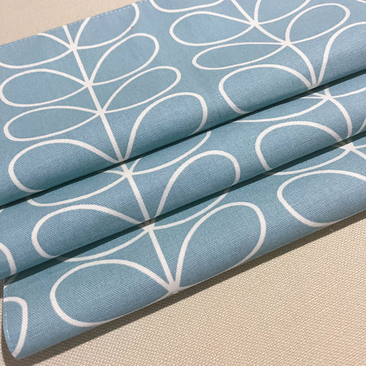 Roman Blinds Orla Kiely Fabric Powder Blue Stem - Custom Shades, Mid Century Minimalist, Cotton or Blackout Lining, Cord, Chain Headrail