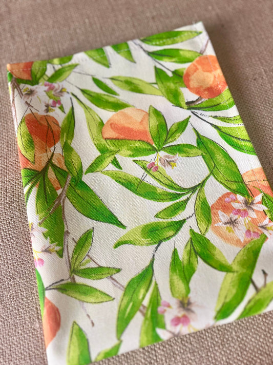 Spanish Orange Print Tea Towel - Mediterranean Citrus Linens