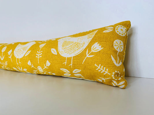 Yellow Scandi Birds Draught Excluder – Weighted, Nordic Retro Decor