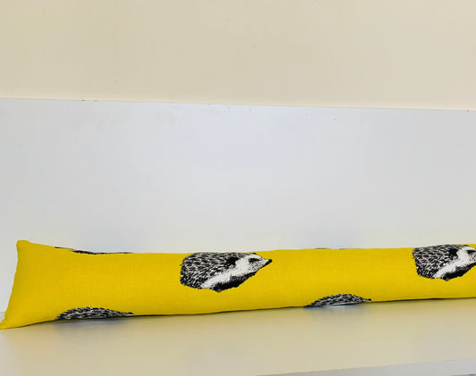 Yellow Hedgehog Print Draught Excluder – Weighted, Retro Decor
