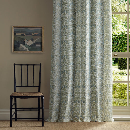 Made-to-Measure Roman Blind in Morris Oak & Blossom Thyme/Woad